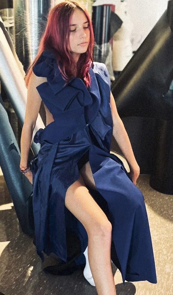 Made during my time in the Rhode Island School of Design Precollege Program as a fashion major, I was given one hour to drape and hand-sew this garment. The assignment culminated in a photoshoot where we were challenged to take editorial photos of our garment.